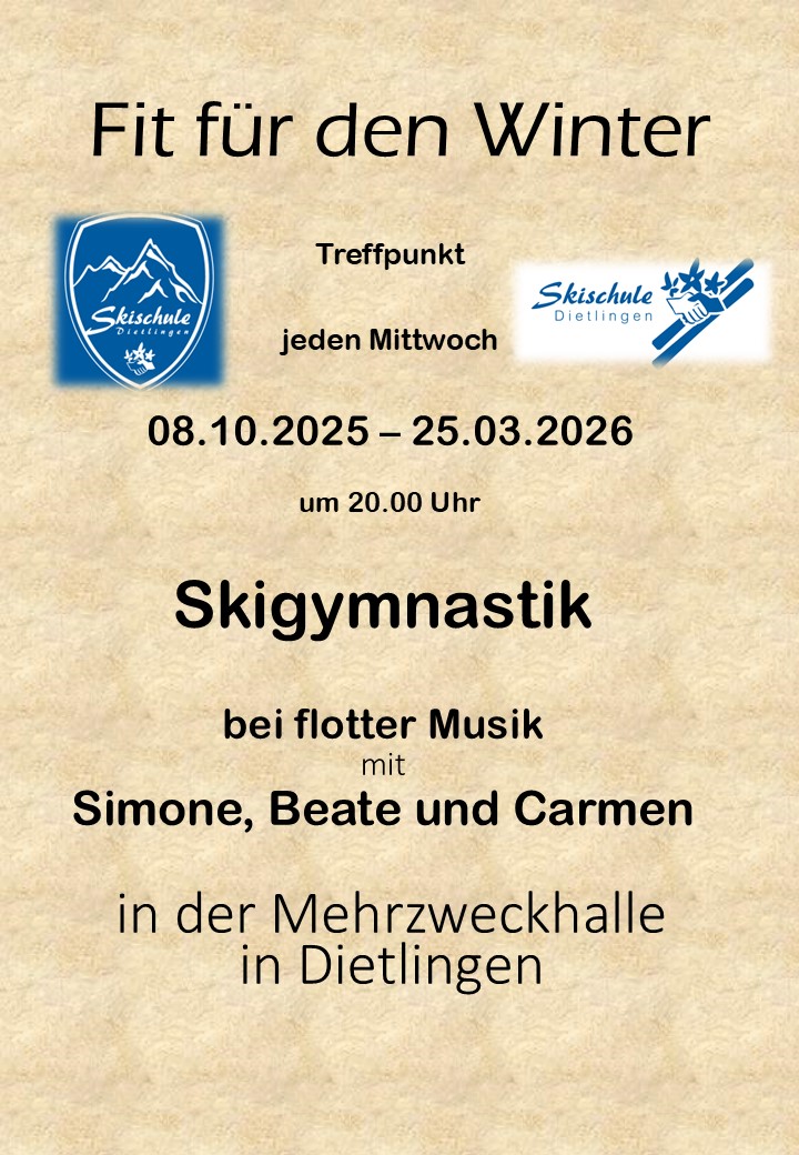 Beginn der Skigymnastik am 07.01.2025 um 20.00 Uhr